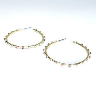 Turn heads with these 2in gold hoop earrings featuring stationed pink crystals. With a touch of sparkle, these hoops will add a glamorous and playf...