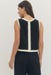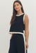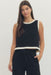 This sleeveless knit top is the kind of piece you'll reach for again and again. Crafted from incredibly soft knit fabric, it features crisp ivory trim that traces the neckline and armholes, creating a fresh contrast against the rich black body. The back button detail adds a touch of refinement, while a side slit gives you freedom to move. Unlined for maximum comfort, it's the perfect canvas for your personal style—dress it up or keep it casual. Pair it with the matching pants for a flawless look.