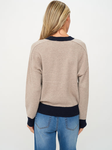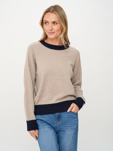 Unwind and feel good in the Dylan Crew Neck Sweater. Crafted with soft, cozy fabric, this latte colored sweater features dark navy trim for added s...