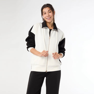 The Hilarie Two-Tone Zip Front Sweatshirt in Black/Ivory offers easy comfort for every day. Soft and cozy, it’s perfect for relaxing at home or run...