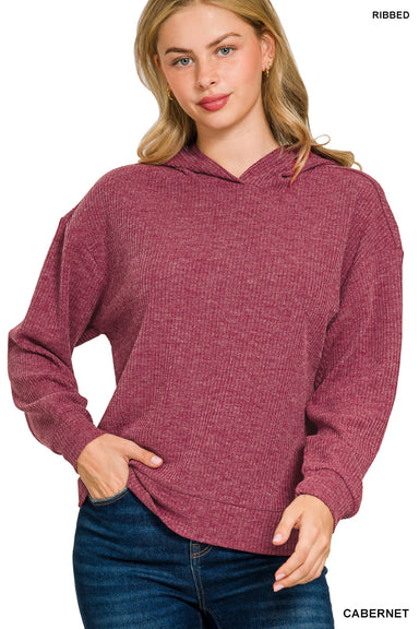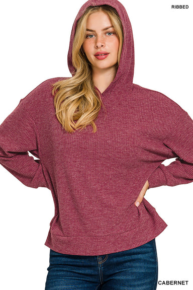 Enjoy relaxed, easy comfort with the Ribbed Hoodie & Drawstring Lounge Pant Set in cabernet. The ribbed hoodie offers warmth and a cozy feel, w...