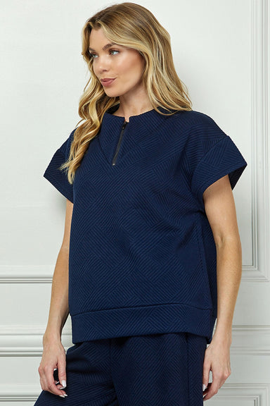 Sale Textured Half Zip Top Navy