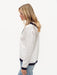 Meet the Jessie Colorblock Hoodie—your new go-to for effortless style. This white sweater with navy trim features soft, breathable fabric and a cozy hood with drawstrings for those days when you want to stay comfortable and look put-together. Throw it on with your favorite denim and you've got an outfit that works for everything from coffee runs to weekend hangouts. Simple, stylish, and made for real life.