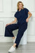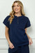 This navy textured half zip top offers easy comfort with its relaxed, oversized fit and short sleeves. The half zip detail makes it simple to wear, while the banded bottom provides a subtle shape. Pair it with the cropped textured pants for a cozy and stylish ensemble perfect for casual days.