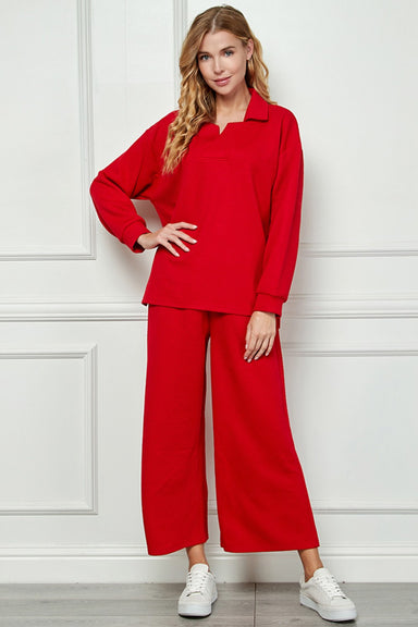 These textured cropped wide leg pants in red combine effortless style with ultimate comfort. Featuring an elastic drawstring waist and convenient p...