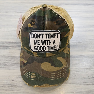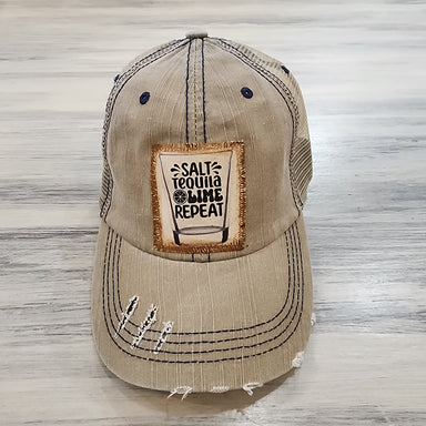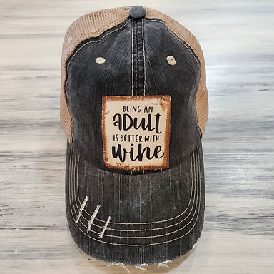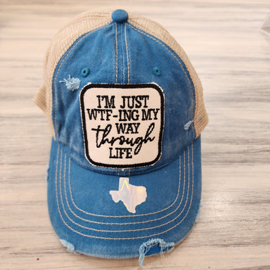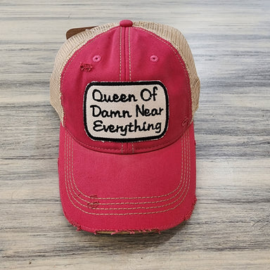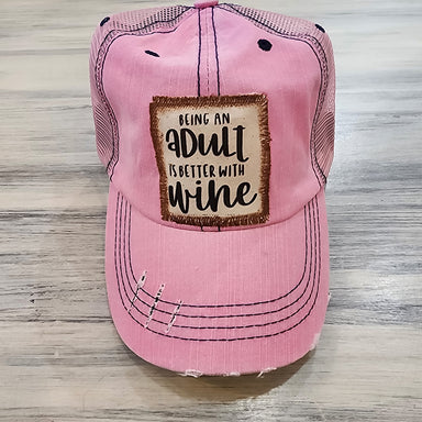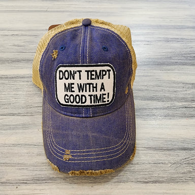 Fun distressed trucker hat with a patch saying on it. There is also a little bling added to this fun one. Great as a gift or for yourself.
