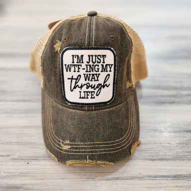 Fun distressed trucker hat with a patch saying on it. Great as a gift or for yourself.