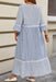 This plus size maxi dress combines comfort and style with its relaxed fit and classic blue striped pattern. Featuring a chic crossed lace detail, round neckline, and bracelet sleeves, it offers a flattering silhouette for women of all ages. The mixed pattern patchwork adds a unique, fashionable touch, making it perfect for any occasion where effortless elegance is desired.
