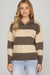 Enjoy the perfect blend of style and ease with the Half Zip Striped Long Sleeve Sweater in mocha and cream. Crafted for comfort, its soft material and relaxed fit keep you cozy throughout the day. The half-zip feature adds versatility, letting you adjust your look and temperature effortlessly.