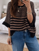 Effortless style meets comfort in this striped slouchy sweater. The oversized silhouette and 3/4 draped sleeves create a relaxed, modern look that works beautifully with jeans, leggings, or your favorite casual bottoms. Soft knit fabric delivers all-day coziness without sacrificing that chic, put-together vibe. Perfect for layering or wearing solo, this versatile piece becomes an instant wardrobe essential for laid-back sophistication.