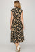 This black midi dress with a floral print offers easy comfort with a relaxed drop shoulder design and a smocked waist for a flattering fit. The front zip allows for effortless wear, while handy pockets add practical style—perfect for everyday wear with a touch of feminine charm.