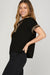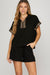 Drop Short Sleeve Half Zip Top Black w/Leopard Trim
