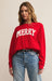 Meet your new seasonal essential—a generously oversized sweatshirt that prioritizes comfort without compromise. Built from mid-weight cotton fleece, it delivers genuine warmth and touchable softness that only improves with wear. The standout "Merry" graphic in textured boucle applique brings understated festive charm to your everyday rotation. Finished with a relaxed crew neck, long sleeves, and a vintage wash that feels lived-in from the start, this is the kind of piece you'll reach for again and again when you want to feel both cozy and intentional. Pair it back with the hangout plaid pant in festive red.