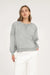 This washed knit top offers easygoing comfort with its extended shoulder design and long sleeves. Featuring exposed seams and a soft grey color, it combines relaxed style with a cozy feel—perfect for casual wear all day long.
