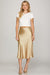This Satin Bias Midi Skirt in Light Gold combines effortless style with easy comfort. Its elastic waistband ensures a flexible, comfortable fit, while the back zipper offers a smooth, polished finish. The satin fabric drapes beautifully, making it perfect for holiday gatherings or casual wear.
