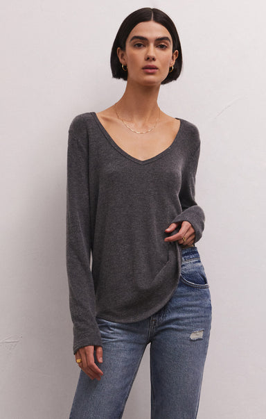 This fitted long sleeve top combines easy comfort with a lived-in charm. Crafted from soft waffle thermal fabric, it features raw-edge shoulder sea...