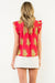 This flutter sleeve blouse in reddish pink tone offers lightweight cotton comfort with a delicate floral print. Its airy design and soft fabric make it an easy choice for relaxed, everyday wear with a gentle feminine flair.