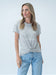 Experience effortless style with the Kelly Twist Bottom Tee in Ivory and Black. This soft, breathable crew neck tee features thin horizontal stripes and a playful knotted front, adding a subtle twist to your everyday look. Perfect for comfortable, casual wear with a touch of fun.