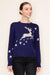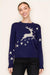 This navy long sleeve sweater features a cozy crew neck and a charming reindeer design embellished with silver lurex yarn, adding a subtle sparkle. Soft and comfortable, it’s perfect for staying warm with a festive touch throughout chilly days.