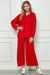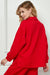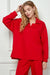This long sleeve textured top in a festive red features a relaxed oversized fit and a collared v-neck for easy wear. Side slits add subtle detail and allow for comfortable movement. Perfect for holiday occasions, it pairs beautifully with cropped textured pants for a cozy and stylish look.