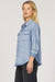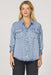 The Adrianna Button Up Long Sleeve Shirt Tulip Crest features a long sleeve button-front design with a soft, printed fabric that mimics a washed, worn denim look. This comfortable top combines casual style with easy wearability, making it a perfect choice for relaxed, everyday outfits.