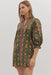 This charming floral dress brings together comfort and style in one effortless piece. The olive base showcases a delicate print while the ruffled band collar and V-neckline with contrast trim create visual interest. Puff sleeves in a three-quarter length offer a modern silhouette, and hidden side pockets add practical convenience. Crafted from lightweight woven fabric with a full lining, it's designed to feel as good as it looks—your new favorite dress for relaxed days that deserve a little extra polish.