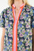 Brighten your wardrobe with this charming floral blouse featuring a blue and lavender print that feels fresh and effortless. The puff sleeves add a playful touch, while the V-neckline keeps things flattering and comfortable. Eye-catching orange and pink contrast trim frames the collar and runs down the front, creating a fun pop of color that elevates the whole look. Perfect for casual days or dressing up with your favorite accessories.