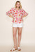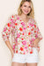 Split Neck 3/4 Smocked Cuff Sleeve Floral Print Button Down Blouse
