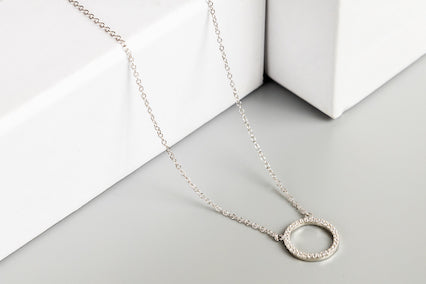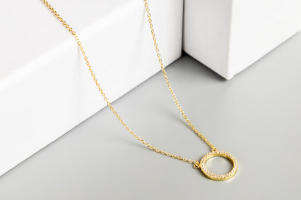 Sterling silver or 18K gold plated over sterling silver this oval rhinestone necklace is adjustable from 16-20in.