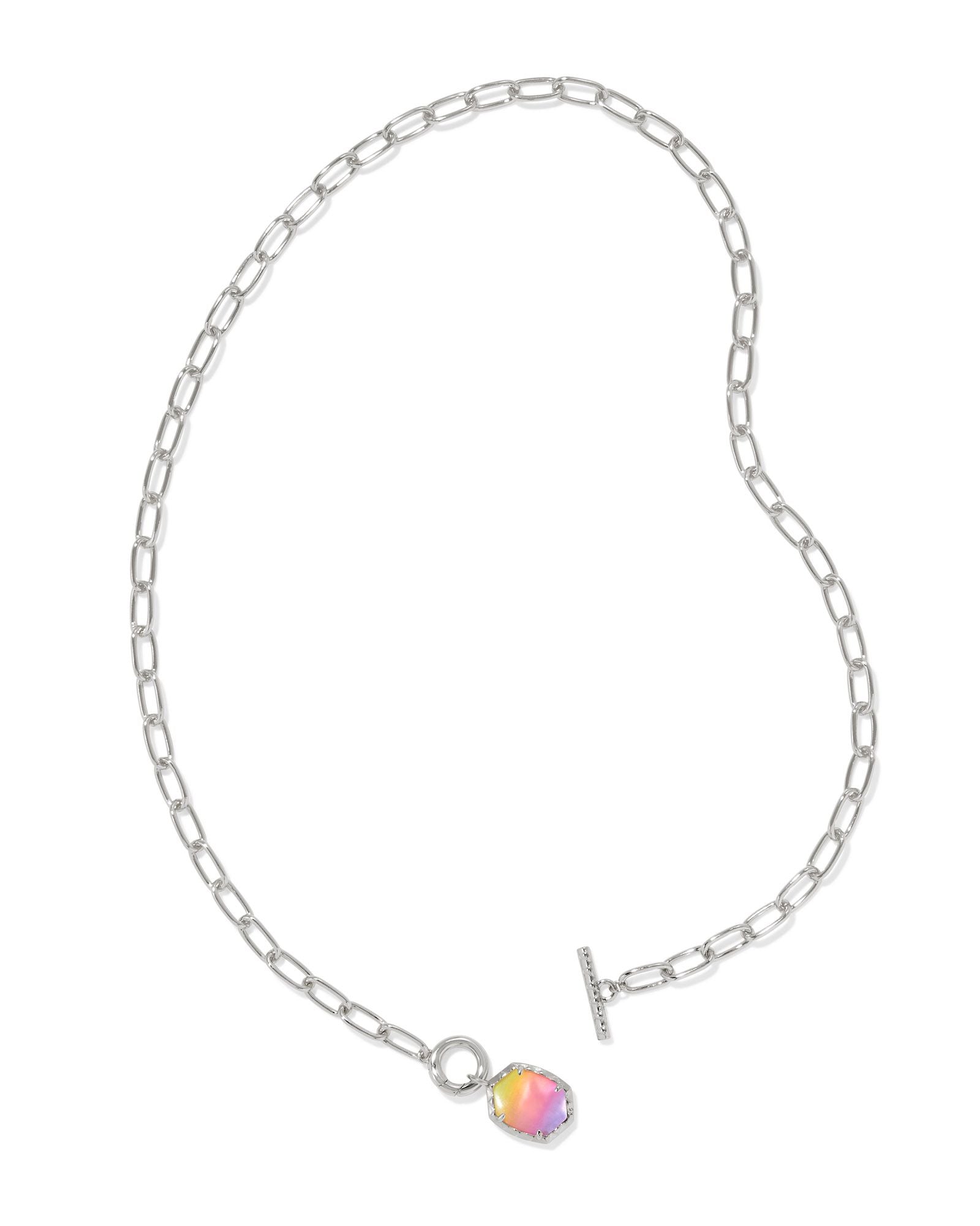 Meet the latest MVP (or should we say most valuable layer?) in your necklace stack. The Daphne Silver Link and Chain Necklace in Sunrise Watercolor Illusion features the newest iteration of our signature oval shape as a charm on a trendy paperclip chain with a toggle closure. It's convertible, too: wear the charm for a bold splash of color or remove it for a chic metal moment.