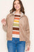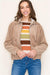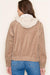 This taupe corduroy jacket combines softness with casual style. Featuring a cozy knit drawstring hood, zipper closure, and convenient pockets, it offers both warmth and practicality. Its easy, relaxed fit makes it perfect for everyday comfort.